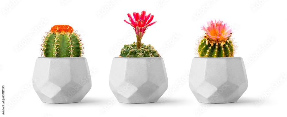 Decoration flowering cacti on concrete pot