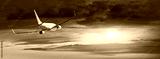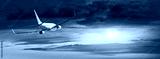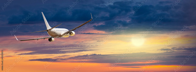 Passengers commercial airplane flying above clouds