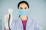 Doctor wear surgical mask holding stethoscope, World health day , health care life insurance