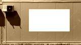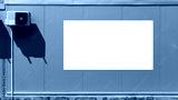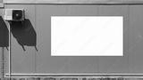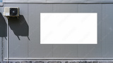 blank ad banner fixed near white air conditioner on wall