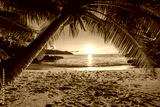 sunset at tropical beach anse lazio on praslin on the seychelles
