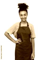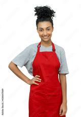 Beautiful latin american waitress with red apron