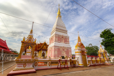 Beautiful white pagoda at Wat Phrathat Renu Nakhon, Nakhon Phanom