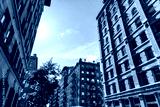 Low angle view of luxury apartment buildings in Tribeca North District of New York City