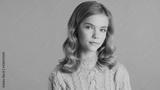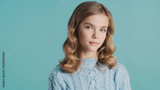 Beautiful haired teenager girl intently looking in camera posing