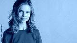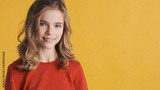 Beautiful teenager girl with wavy hair dressed in red sweater sm