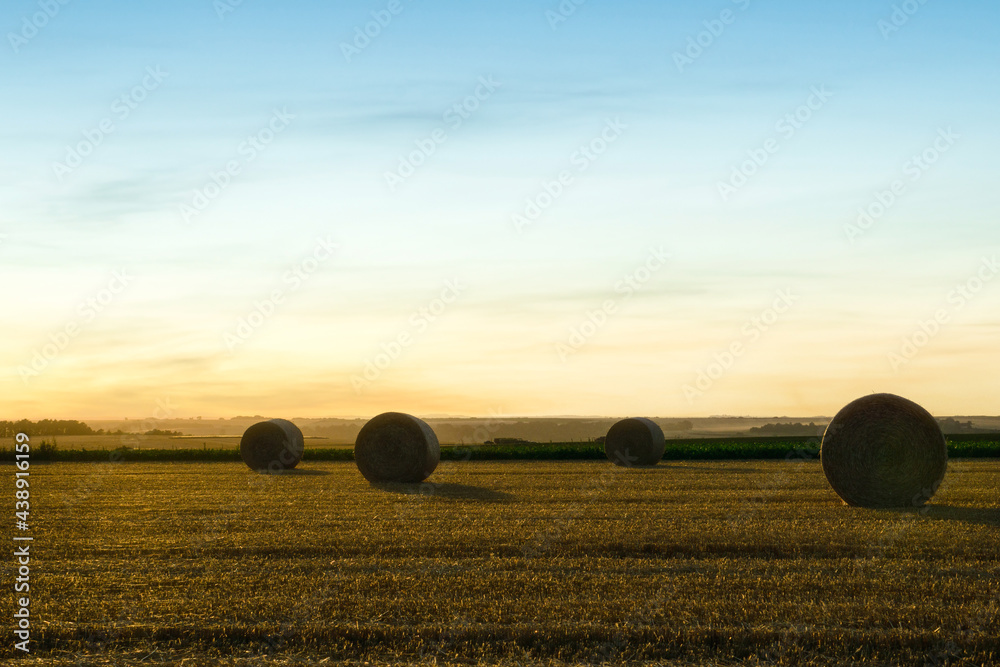 Straw bales stacked in a field at summer time, Reims
