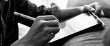 man using tablet blank screen in living room for working from home or using internet for online shopping and social network,online learning.