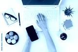 Woman working on office table