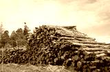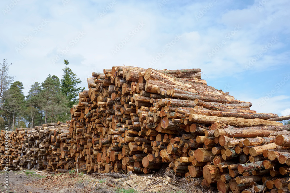 Chopped wood logs for sale use in fire place at home stored on forest woods green biomass energy