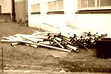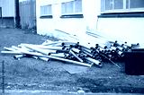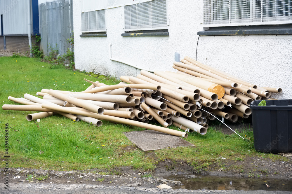 Cardboard tubes and rubbish dumped outside building