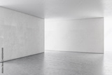 Sunny concrete interior with sunlight and empty wall mockup place. Exhibition, art and advertisement concept. 3D Rendering.