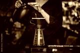 Cafe staff pour hot water into coffee beans to drip coffee for good smell and good quality serve customers ,who order to taste.