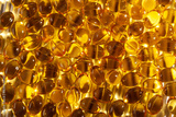 Vitamin D or cholecalciferol in olive oil capsules on the white background close up