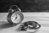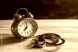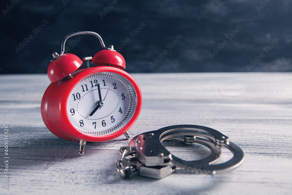 alarm clock and handcuffs