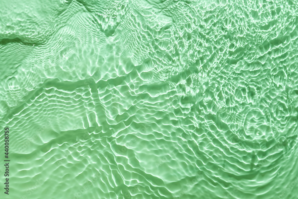 Surface of cosmetic moisturizer splash reflections on scattered sun. light green abstract background
