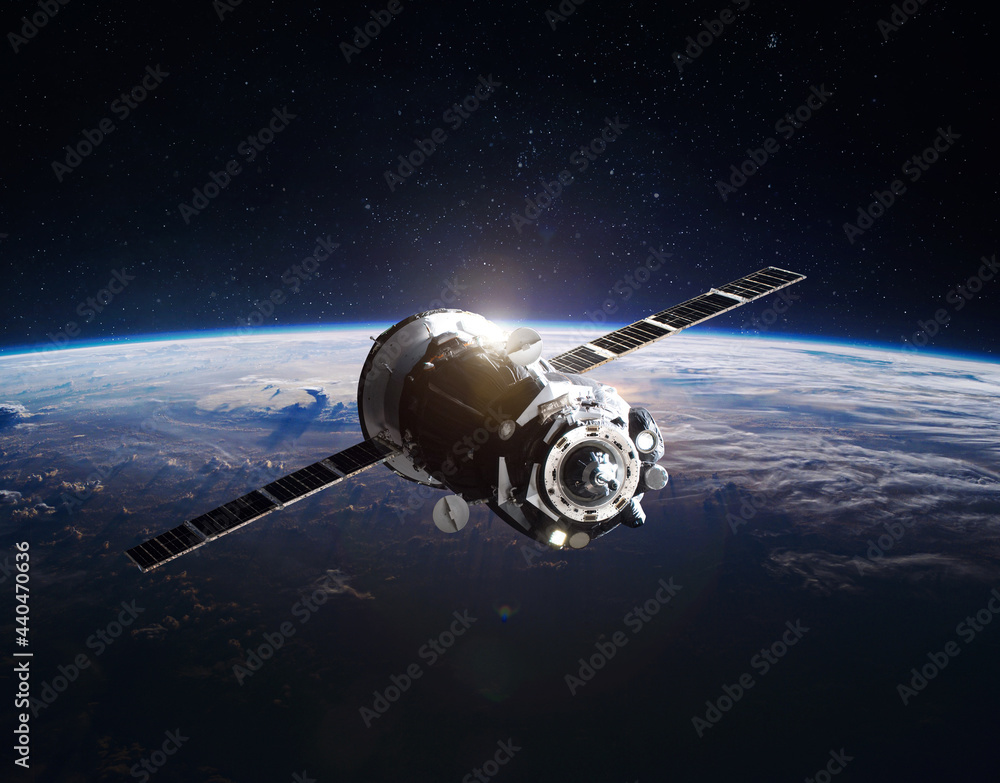 Spaceship on orbit of the Earth planet. Dark space. Elements of this image furnished by NASA