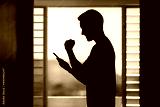 Young man on his smartphone looking at tablet screen clenching his fit felling victorious accomplishing his goals.
