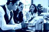 Group of professional business discussing meeting strategy sharing idea with new project.Creative business people working with laptop computer in green plant terrace decorated modern workloft