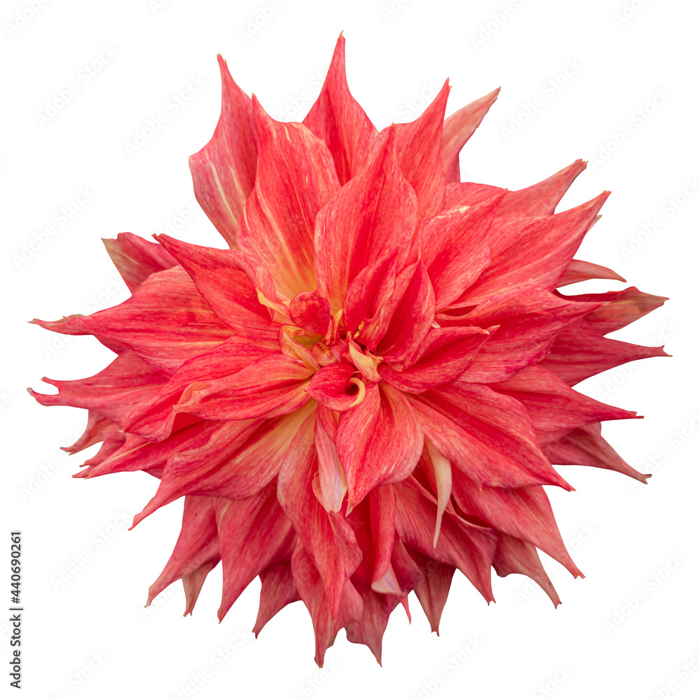 Close-up of a beautiful orange dahlia flower isolated on white background.