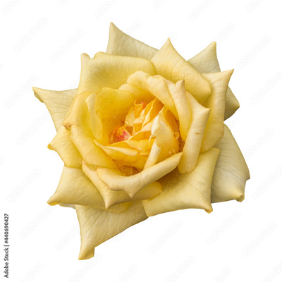 Close-up of a beautiful yellow rose flower isolated on white background.