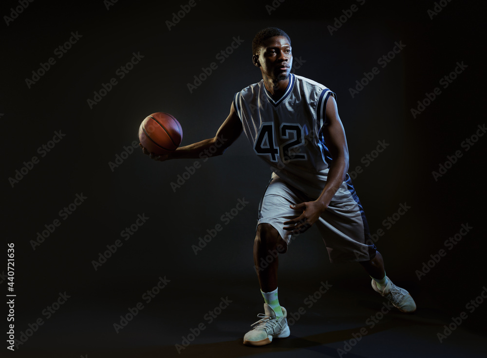 Muscular basketball player, black background
