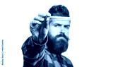 Vintage straight razor. Mens haircut. Man in barbershop. Handsome bearded hairdresser is holding a straight razor while barbershop. Straight razor, barbershop, beard. Portrait of brutal bearded man