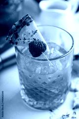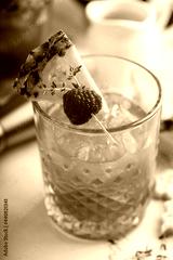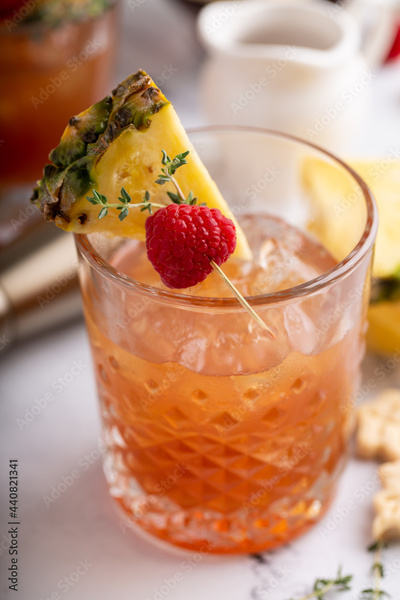 Raspberry pineapple refreshing cocktail with thyme sprig