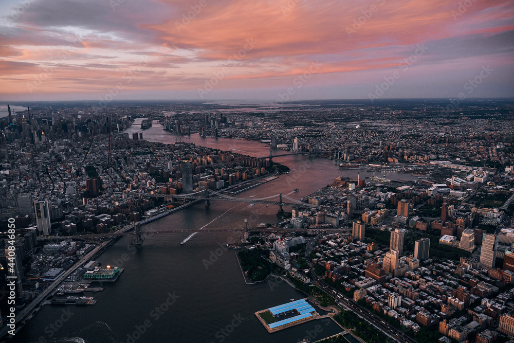 An Aerial View of East River and Two Bridges Lower Manhattan in New York City