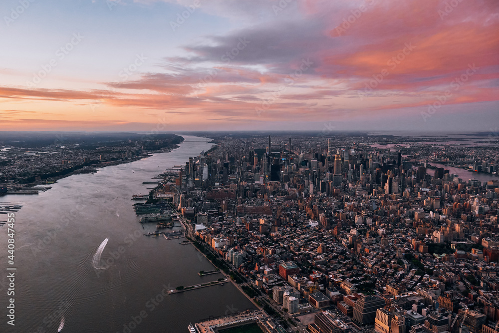 An Aerial View of Lower Manhattan and Hudson River in New York City