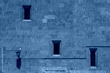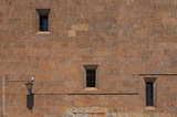 Windows and street lamp of a medieval building in Salamanca. Spain
