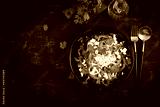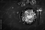 Vegetable salad with tomato, fresh lettuce, soft cheese and onion. Healthy diet food. Top view, above