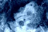 Texture of mildew on the bread. Aspergillus fumigatus mildew texture on bread bread. Organic, medical research.