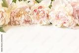 Bouquet of beige-pink peony flowers on a light paper background with space for text. Image for the design of greeting cards on the theme of wedding, Valentine's Day, declaration of love