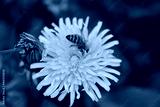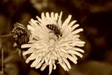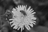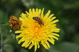 Close-up of Apis mellifera on Taraxacum officinalis flowers. Honey bee on yellow Dandelion flowers on springtime