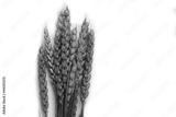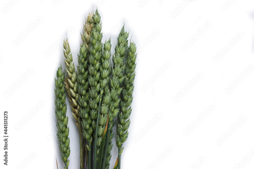 Green wheat plants with seeds isolated on white background. Triticum aestivum