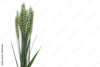 Green wheat plants with seeds isolated on white background. Triticum aestivum