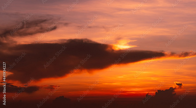 Dramatic red and orange sunset sky and clouds abstract background. Red-orange clouds on sunset sky. Heaven sky. Sunset abstract background. Dusk and dawn concept. Romantic sky. Beauty in nature.