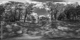 full seamless spherical hdri panorama 360 degrees angle view among old poplar grove in forest near lake in sunny day in equirectangular projection, ready VR AR content