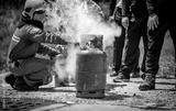 fire extinquisher training gas tank under explosion on fire danger accident and risk for people around area