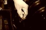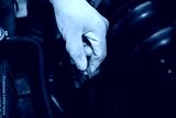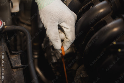 Service man checking car oil engine, Close up hand hold oil check stick or Oil Dipstick