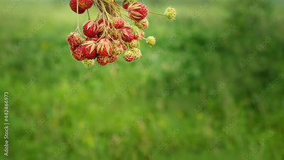 red wild strawberries on abstract green natural background. Ripe Sweet berries, organic healthy vitamins food. Summer season, fresh harvest concept.