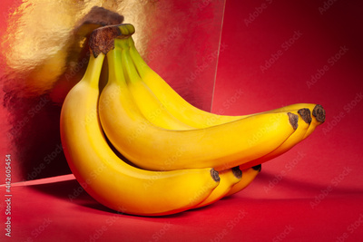 mirrored banana bunch on red background