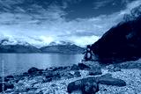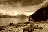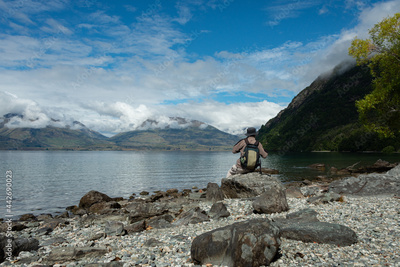 A man sitting on the rocks, enjoying the mountain views across Lake Wakatipu, Queenstown