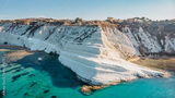 Scala dei Turchi,Sicily,Italy.Aerial view of white rocky cliffs,turquoise clear water.Sicilian seaside tourism,popular tourist attraction.Limestone rock formation on coast.Travel holiday scenery