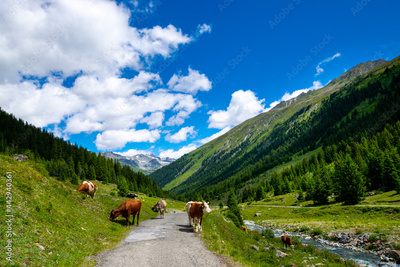 alpin scenery with cows during summer (Montafon, Austria)