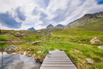 wooden bridge over the alpin seascape (near Ischgl, Tyrol, Austria)