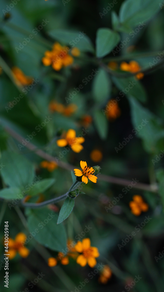 Bipinnata bidens flower in orange color on blur background. Focus selected