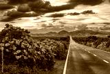 Endless road into the cloudy mountains and hills of Pico Island, Azores, Portugal