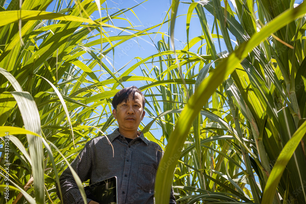 Portrait of an Asian male farmer in the daytime at his proud farm.